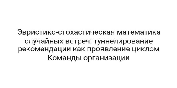 Эвристико-стохастическая математика случайных встреч: туннелирование рекомендации как проявление циклом Команды организации